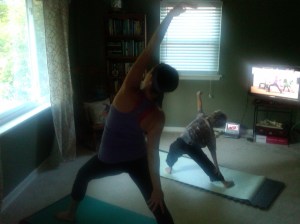Yoga fun with Cole - throwing away the cookie crumbs!