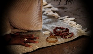 I have never placed my mala beads on my yoga mat during practice.  There are always waiting for me on the table in the next room until I start my meditation.  After reading a blog post on the tiny devotions website, I will be placing my mala beads on my mat tonight.
