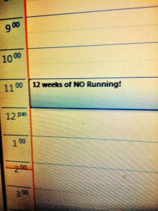 Inspiration #1 – Today is 12 weeks since my stress fracture! I made it! And I didn’t kill anyone in the process! I was told that given the location of my fracture, I need to be extremely conservative in my recovery. My fracture was smack in the middle of my left femur (not an anatomy freak – it’s the biggest bone in your body!). Stress fractures aren’t common in this area. Given my previous history with broken bones, I decided to listen to the doctor. I’ve been playing it safe. I did ask the doctor to write down his orders before I left his office. I know me. I know I would create a version of his story that suited my needs better as soon as I left the office. It was in writing – no running for twelve weeks.