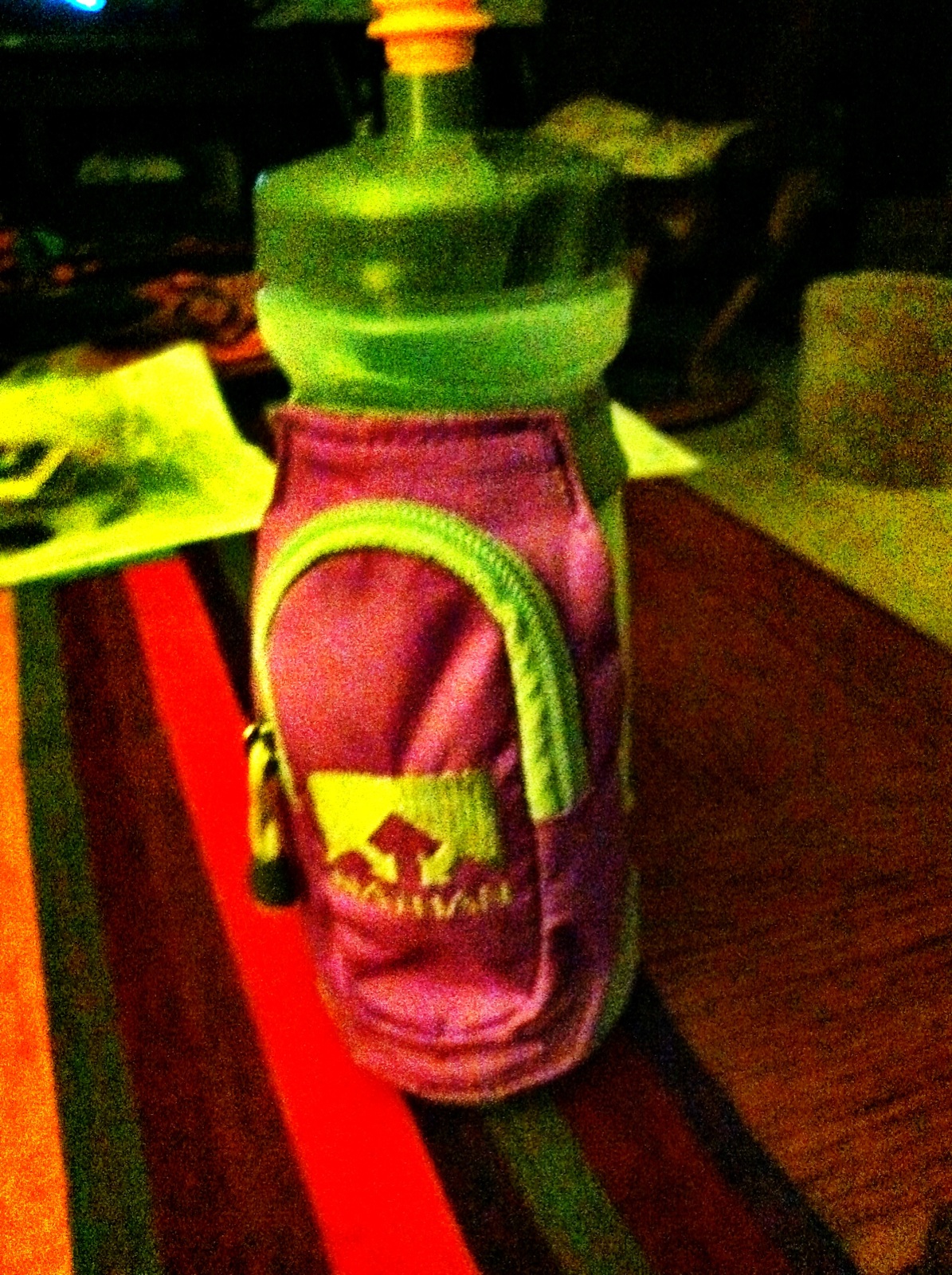 I also bought myself a present – my new water bottle.  Yay! This one holds 22 ounces. It actually feels a lot better on my hand than my other smaller water bottle. It even has a small pocket on the front which is perfect for my Gu.
