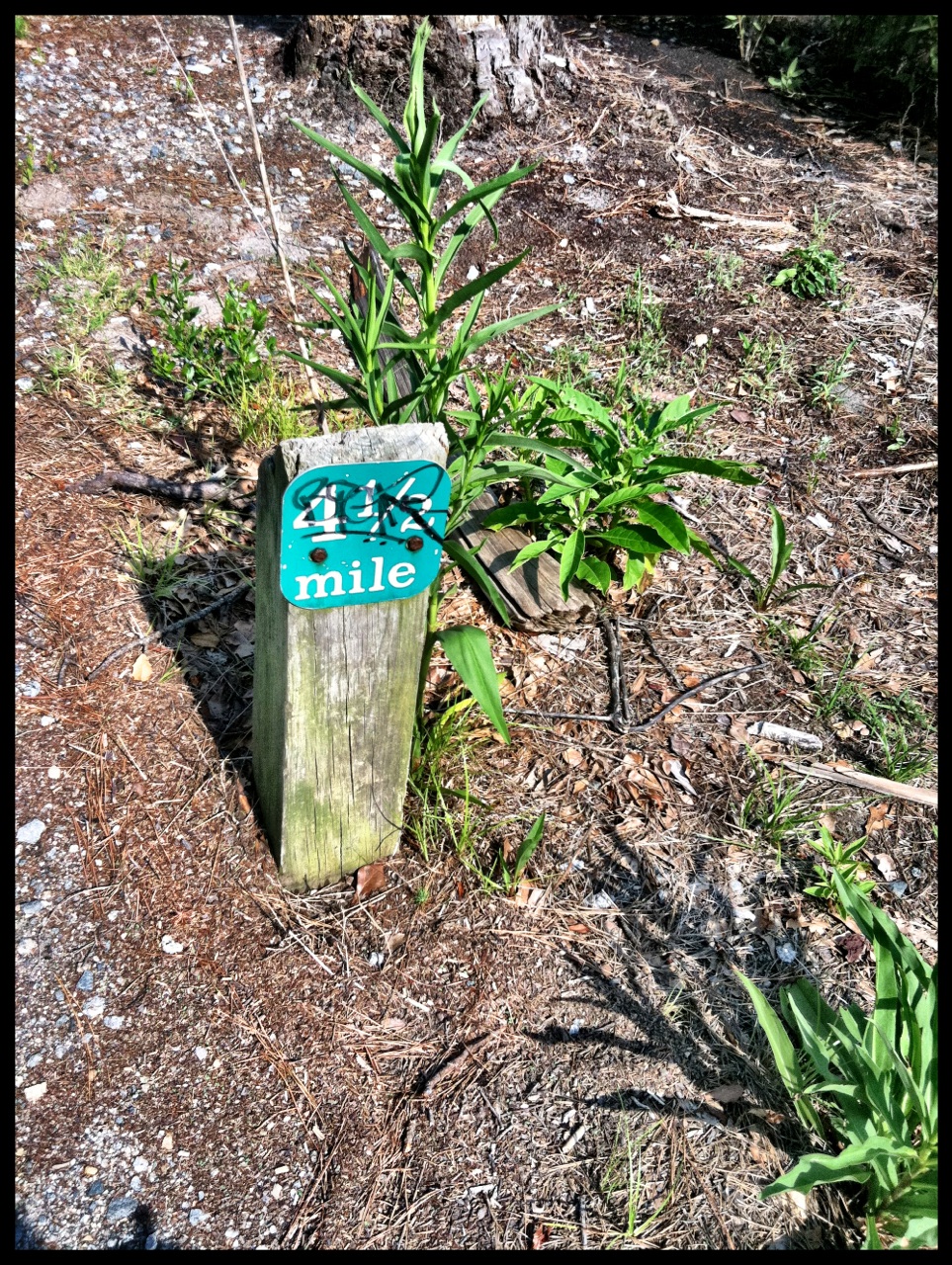 Today was my first 2 mile run since my injury. Today was my first day in training – not in recovery. I brought my run stuff with me to work and headed to First Landing State Park after my work day was over. It’s my favorite place to run. I set off on my run with two goals – enjoy my surroundings and be present. My Garmin watch froze up again (RIP Garmin). Fortunately I knew there were mile markers along the trail. The first mile marker I passed was 3 1/2 miles. The 4 mile marker showed up a lot sooner than I expected. My plan was to check my heart rate 1 mile into my run – mile marker 4 1/2. It was taking forever to show up. I realized I had listened to at least 3 songs on my iPod since the last mile marker. If each song was 3 minutes, it had been 9 minutes since I passed mile marker 4. I knew there was no way I was running 9 minute 1/2 miles. I soon realized I was reaching the boat ramp parking lot – 2 miles from the start of the trail. I knew I need to check my heart rate, so I decided to check my iPhone (I’ve been using endomondo, and love it! it works just like my garmin but I’m not committed to wearing my watch). I had run 1.77 miles. Mile marker 4 1/2 was nowhere to be found because I missed it along the trail. Not too shabby since I walked twice during my 1.5 mile run two days ago. My heart rate was slightly elevated, so I walked for a few minutes. I took the time to enjoy everything I love about the trail. I even snapped a few pictures of my favorite things along the way. As soon as my heart rate was back to where it need to be, I ran some more. I think all and all I ran about 2.5 miles. That is a victory that I’m going to celebrate! I don’t know what pace I ran – I’m guessing about a 10:30 minute mile. I am almost enjoying not having a watch. While I do like knowing my mileage, I love not being committed to a running pace.