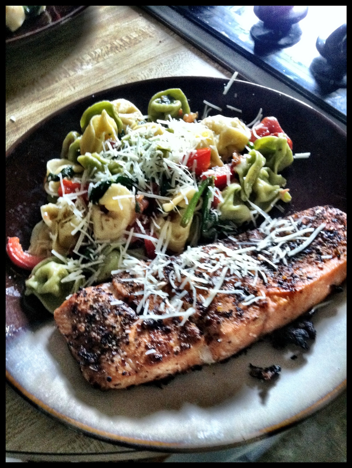 Today is exactly what I needed. I had a solid run for me. The weather was perfect for me – 74 with a breeze. The trails were the perfect running location for me. Dinner was even my perfect dinner. Tonight was eat whatever is in the fridge and is about to go bad night. We created a yummy salmon and tortellini topped with spinach, red peppers, and bacon meal. YUM!
