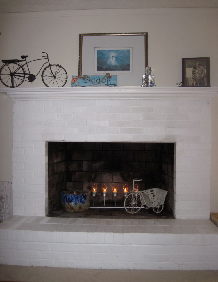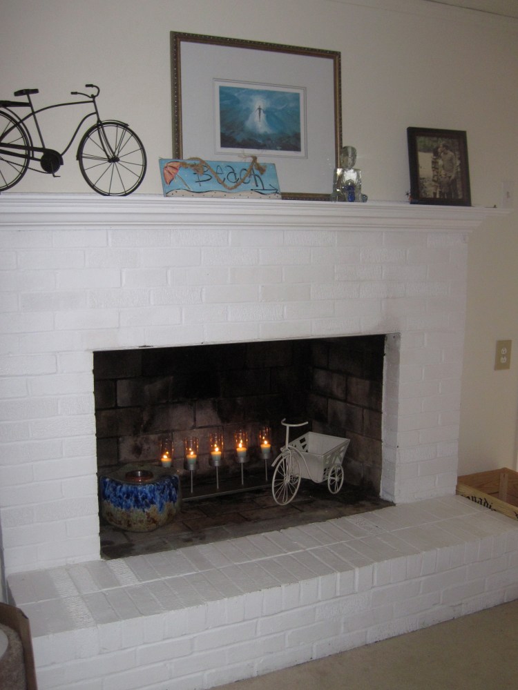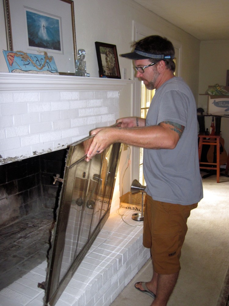 This project was worth so much more than the $4.00 we spent and the 1 hour of our time. I can’t believe we waited so long. (Anyone have any idea what we can do with the old doors – I don’t want to throw them away! Looking for a greener alternative!) Updating the fireplace is the perfect thing to jumpstart the big family room project – PAINT! The project starts this week! I can’t wait! We also organized all of our camping stuff today and have a truck load full of goodwill items.