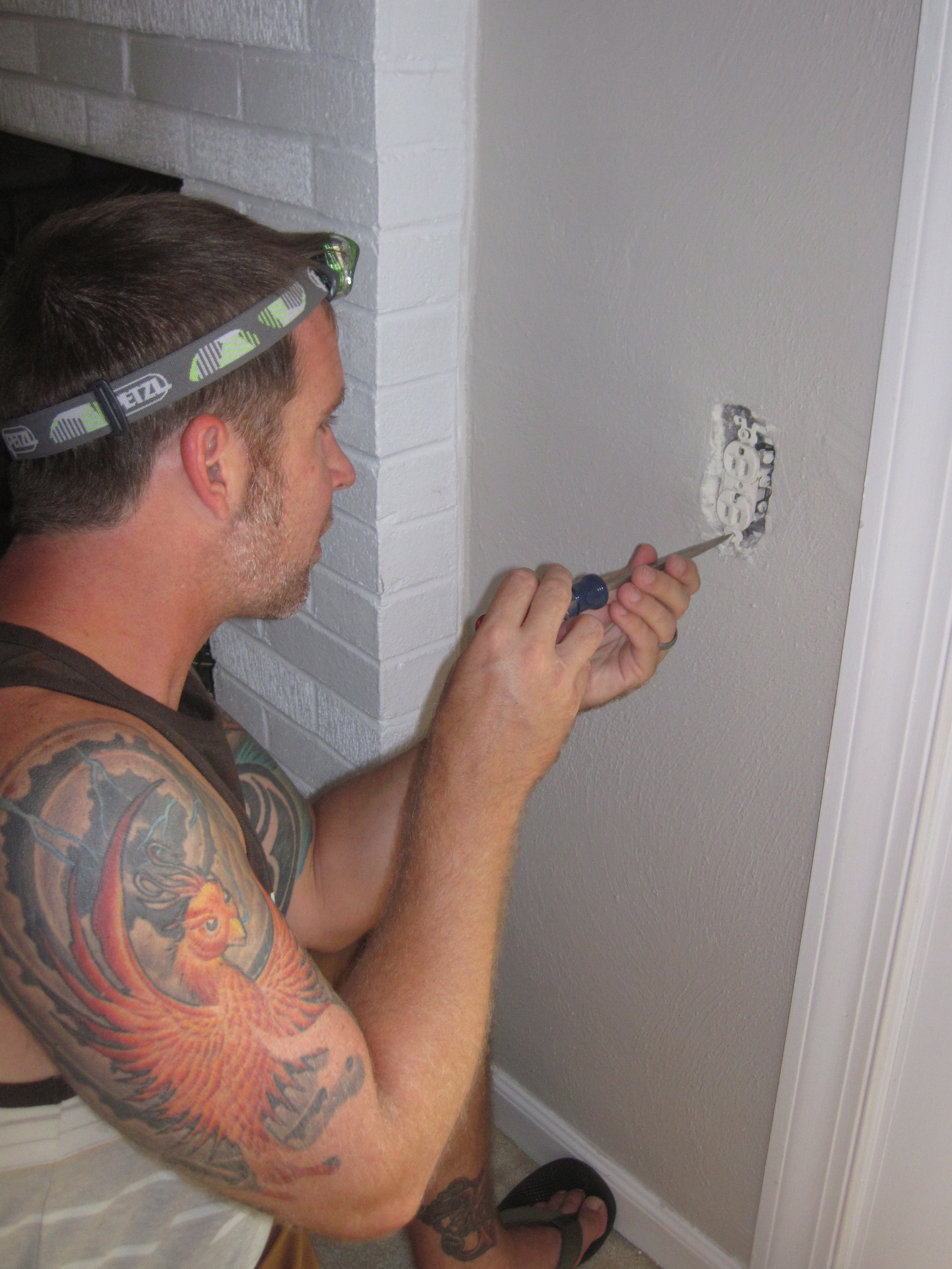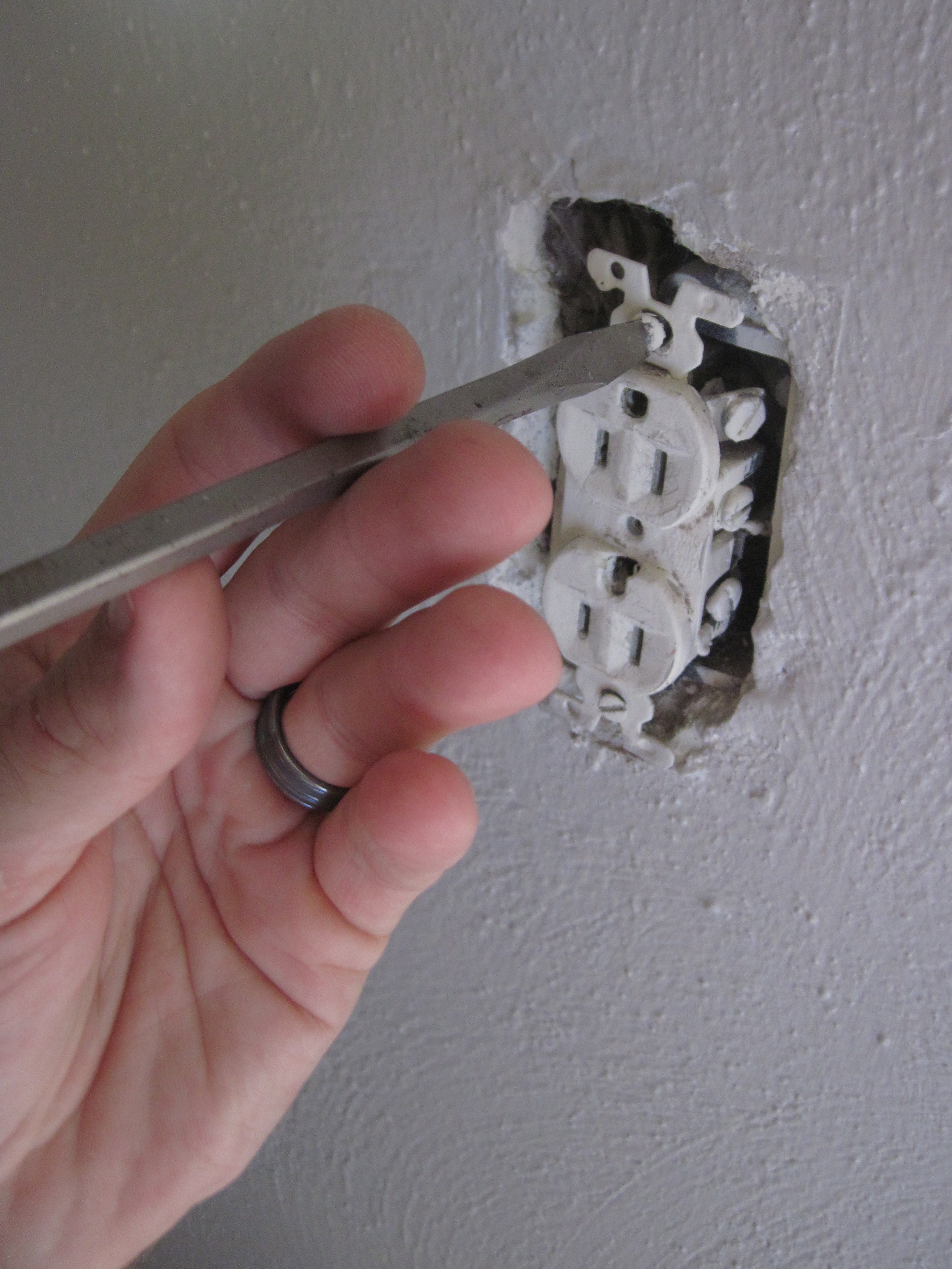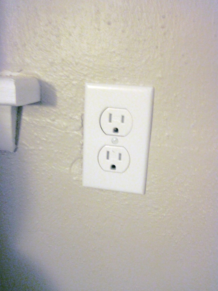 Like all good house projects, the after results inspire a whole new list of house projects. Our family room face lift was no exception. As soon as we had new paint on the walls, I noticed the oldness and inconsistency of the wall outlets. Some of the outlets were the original 2-prong outlets. Some of the outlets were converted to 3-prong but were installed upside down and had been painted over several times. Christian tackled the outlets for me first thing Monday morning. I had no idea I would be so excited about wall outlets. Having an outlet with 3-prongs that actually holds the plug-in place is an amazing thing!