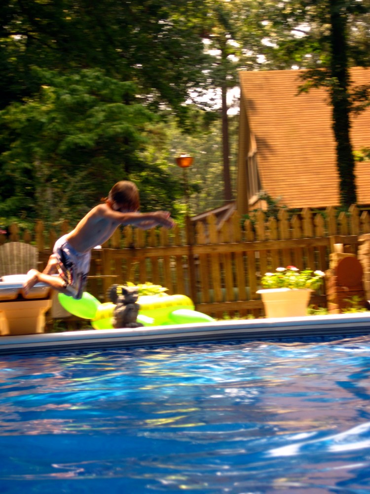 Christian and his mom tentatively suggested that he try to dive.  To my surprise, he was all about it. One successful dive off the side of the pool turned into diving off the diving board.  One successful dive off the diving board resulted in diving off the diving board and swimming to the shallow end in one breath. Cannon balls, belly flops, and lots of diving board fun filled up the rest of the afternoon.