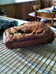 I must have been bit by the cooking bug because I also made Banana Zucchini Bread. It’s about time I used the banana I put in the freezer last week. I’m trying to find some healthier options for breakfast in our house. Cole is in the habit of having a pop tart, a sugary cereal, or chocolate chip muffins for breakfast every morning. I’d like these items to be a special treat instead of an everyday go-to item.Ā I added a 1/2 cup of chocolate chips to the bread, and I’m calling it Chocolate Chip bread. Let’s hope it is a hit tomorrow morning.