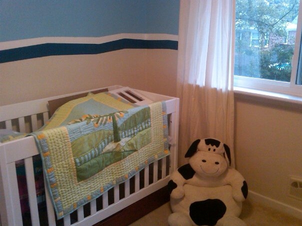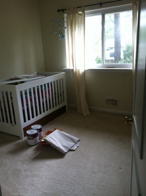 Christian and I started painting Chet’s bedroom two weekends ago. We bought the paint on Saturday, and we got busy painting on Sunday. Before we could even get paint up on the walls, we had to move the last of the non-baby items out of the room. Christian’s dresser is now in our bedroom. The rest is piled up in our front room (I’ll work on that room on a rainy day in the future!).