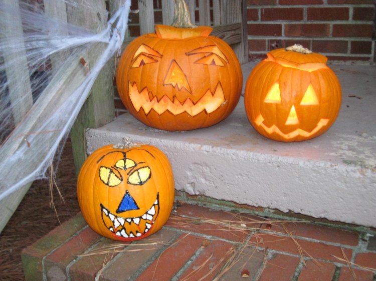 Last year, we had 3 happy pumpkins living on our front porch that we picked out after a hayride and a trip to the pumpkin patch.