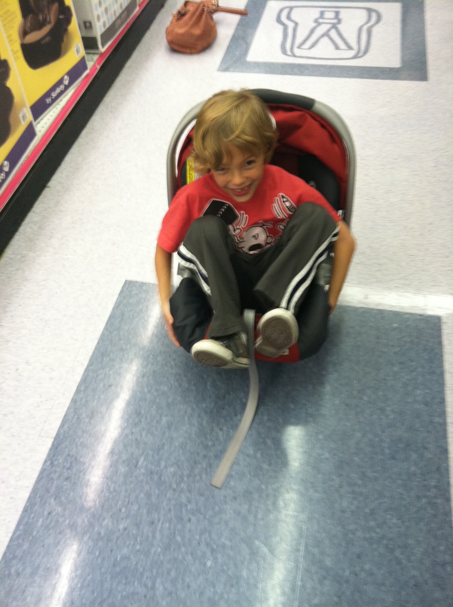 We are officially as ready as we need to be for Chet to come home. We bought a car seat today! Mister Moo has a place to sit for the car ride home from the hospital. After thinking the car seat we really wanted was no longer available, I was  afraid we were going to have to settle for a car seat that was too baby for our taste or not compatible with our BOB. To my surprise, they had it at Babies R Us today. When I brought it home, Christian informed me of why he liked this car seat over all the other car seats.  Are you ready for it?