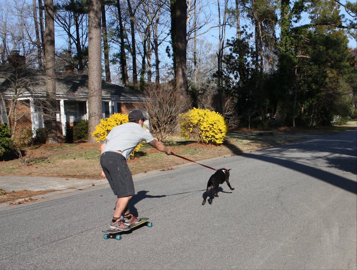 Although he is a “dumb dog” and lacks simple doggy boundaries at time (my lap is not always available for him to sit on), he is a permanent member of our family. He truly is a family dog, and I feel very lucky to have found him. He’s Cole brother. They are best buds. I have no doubt he will love Chet too. He is so gentle with my 2-year-old niece. He is full of energy and loves to play, but he can be a good listener. He’s Christian’s skateboard buddy. He is my annoying running buddy.