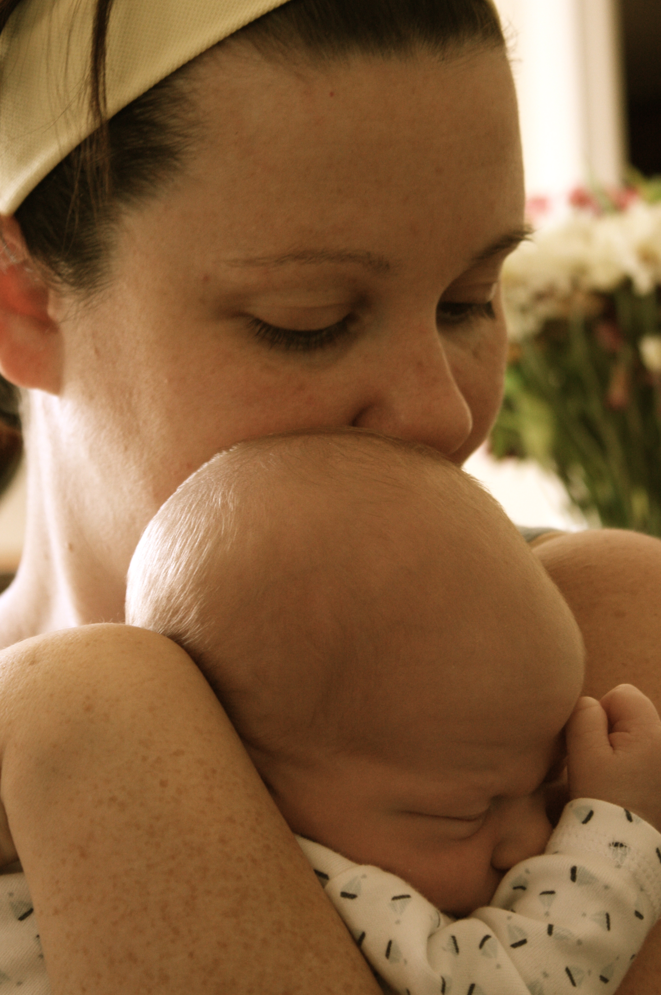 It’s not the diapers or the feedings or even the lack of sleep that keeps me away from those things. It’s me. I could easily leave Chet in his bouncy chair while he’s happy to sneak in a quick yoga practice. I could try to get him to nap somewhere besides the moby wrap. I could put him in the BOB to go for a run. But I don’t want to do any of these things. My heart is happiest when I have my itty bitty baby with me. I don’t want to miss a smile or a laugh (which are slowly starting to form).