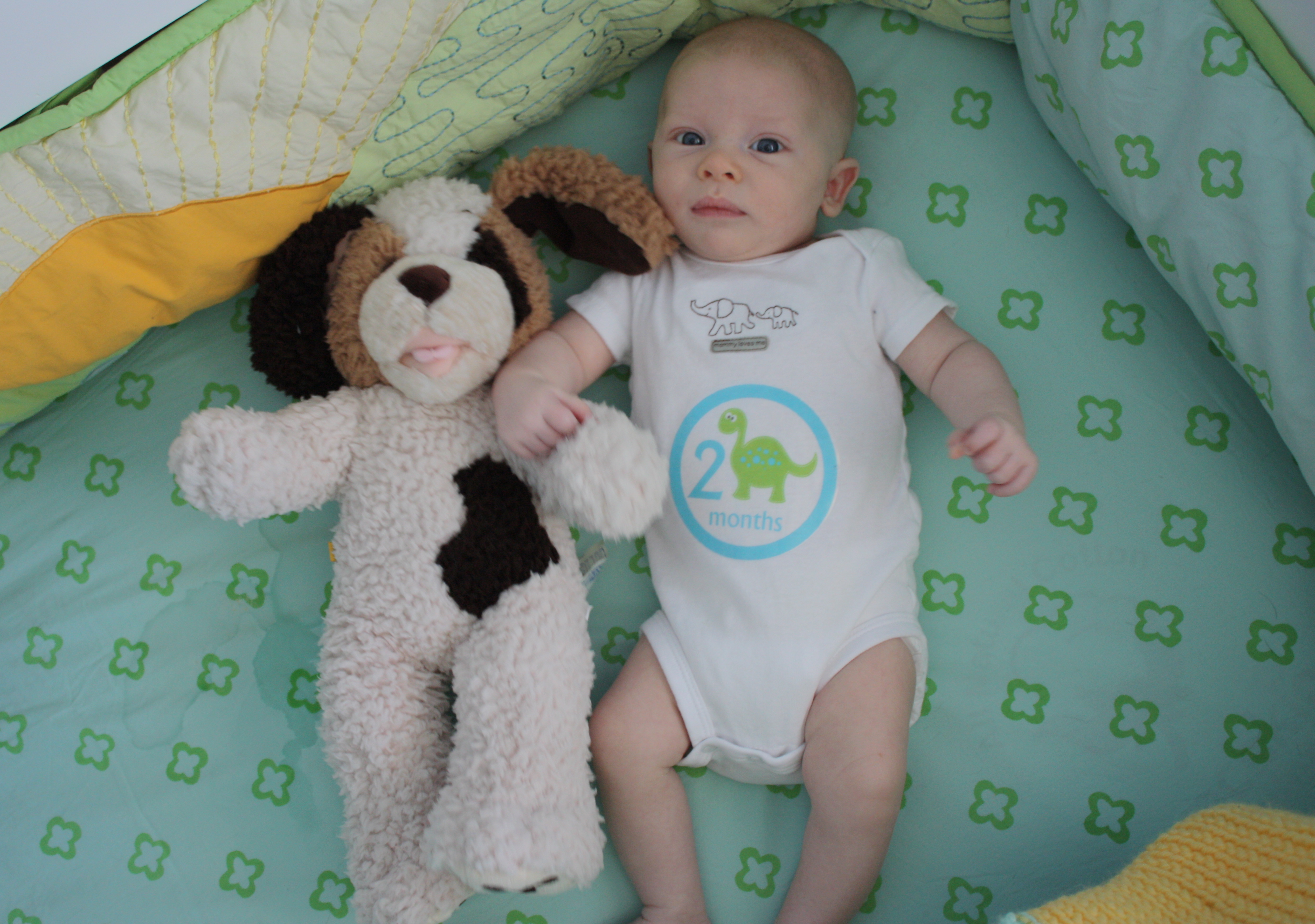 Yesterday marked Chet’s two month birthday. We celebrate in the least fun way possible. Chet went to the doctor for his monthly check-up. He’s now weighing in at 10 lbs 14 oz (50%) and 22.25 inches (25%). Maybe he won’t be taller than the rest of his family. With a short mom and short average dad and tiny brother, Chet wants to feel like he is a part of our family (for now).