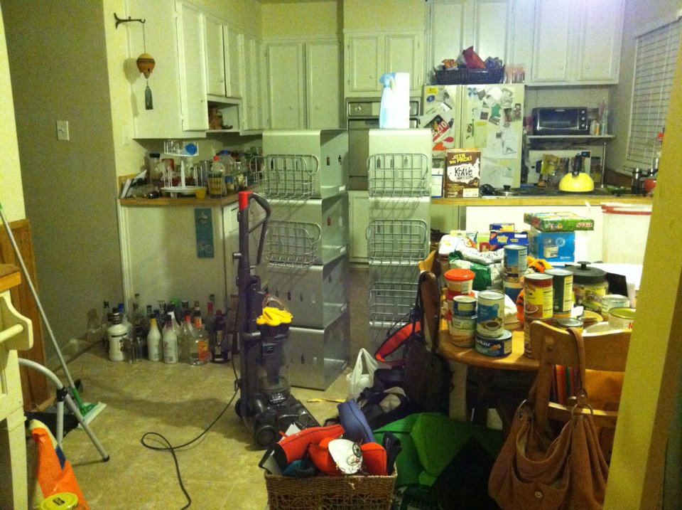 This is what my kitchen looked like when I went to bed (those silver things were our shelves)