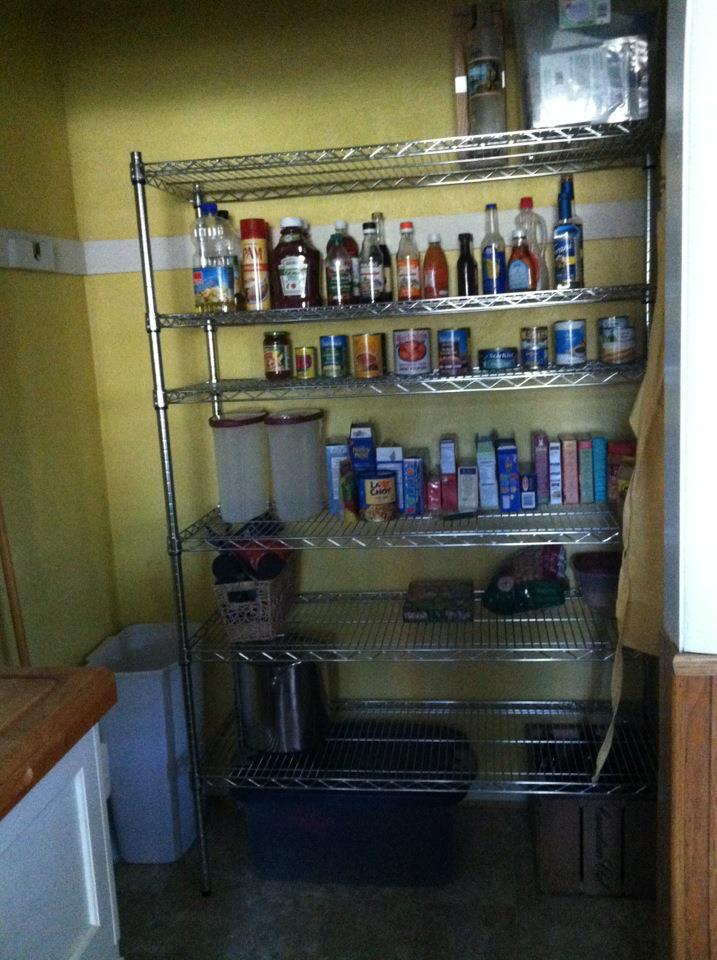 Once the walls were painted, I really didn’t want to put the old “pretend” shelves back in our pantry. Christian head to Home Depot to find a new solution for our empty closet. He came home with a great shelf and a new container for the dog food. After some assembly and some reorganizing, our pantry is coming back to life (hopefully removing the life of any moths that avoided my cleaning frenzy).