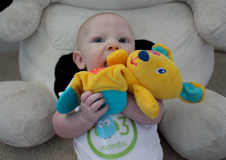 Chet turned three months old on April 5th. Over the past month, we have said goodbye to the newborn phase of Chet’s life. He has grown into a fun, quirky, smiling little baby. Although Chet occasionally hangs on to newborn moments, gone are the consistent nights of nonstop crying. Gone is his need to sleep on top of his mom. Gone are the breastfeeding issues. In place of these challenges, we now have a lot of play time. The day is filled with a lot of baby chatter. He is giggling all the time. His armpits are oh so ticklish. He thinks the sound of a zipper is hysterical. He even thinks his mama is funny. Chet has also become very efficient with his hands. Give him a toy and it will end up in his mouth.