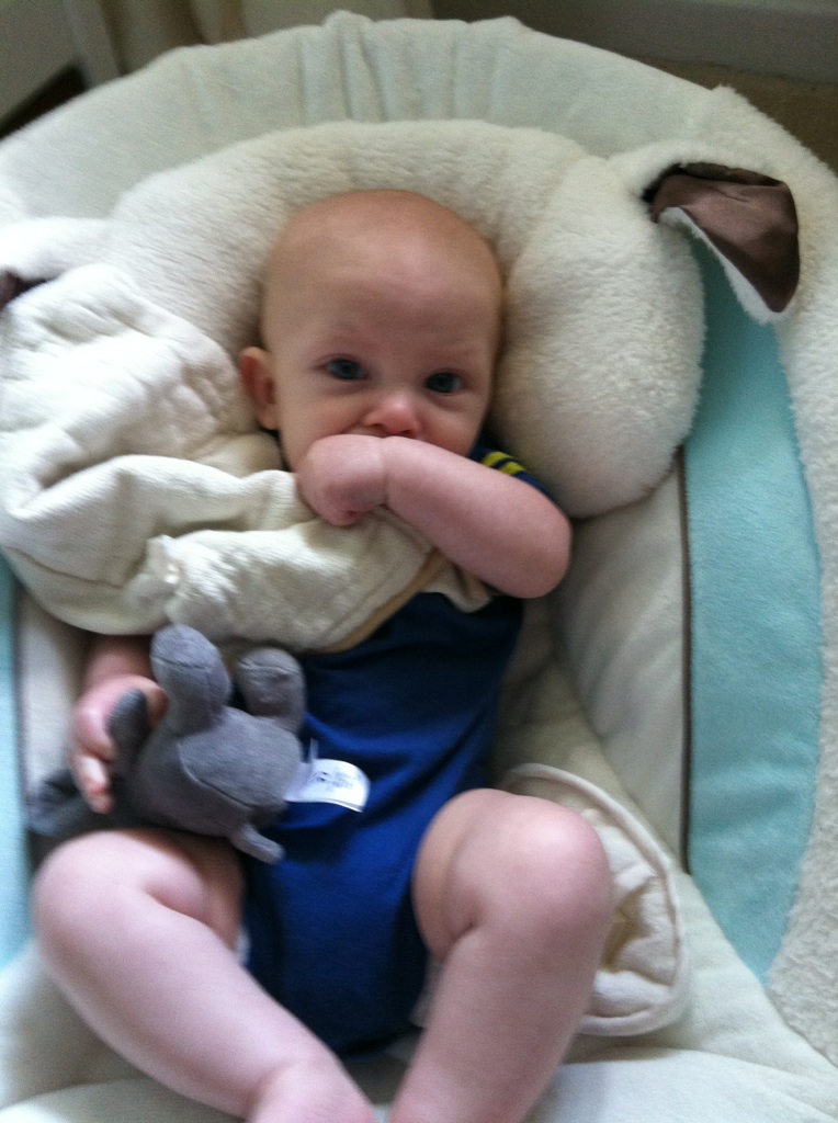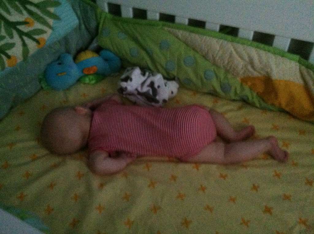 And if I wasn’t overwhelmed enough by trying to figure out all the breast milk/nursing/solid food concerns, Chet monster decided to surprise me with another change this morning. Guess who decided to start sleeping on his belly last night? This one makes me smile though. Doesn’t he look cozy?