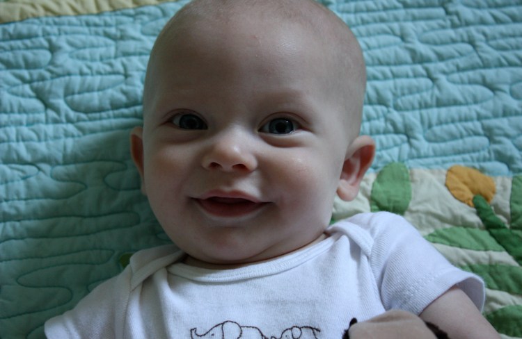 Our biggest celebration this month….well I don’t think I can pick just one. Chet got his first tooth on his fifth month birthday. He gracefully rolls all over the house. He is finally pushing up on his arm when he is enjoying tummy time. He is pulling his knees underneath him to start training for a crawling marathon. He is now a belly sleeper. We also introduced food. Sweet potatoes are as far as we have ventured so far. It is hit or miss right now. Some nights he eagerly eats a few spoon finger fulls. Other nights he is done after a taste. This week we will introduce another veggie to his routine.