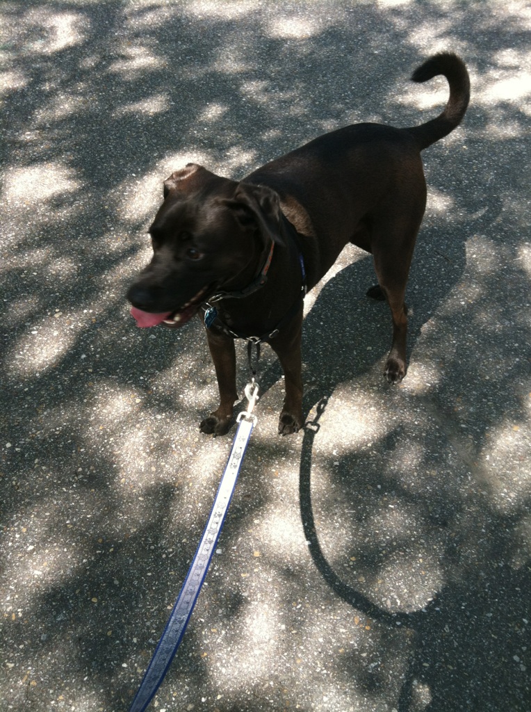 While Cole was busy playing, I decided to take advantage of my time at home and the wonderful weather. I headed out for another stroller run. After my wonderful run yesterday (10k exactly 1 minute faster than last week – and it felt easy – and I was able to keep a conversation going the whole time – and I ran negative splits), I was really looking forward to running today. As I buckled Chet into his stroller, the dog stood by the front door. He looked so sad. Please take me with you. After telling myself I couldn’t handle both the crazy dog and the jogging stroller, I walked into the house and decided to give it a try. Why not? If I couldn’t handle both, I didn’t need to feel guilty about leaving him at home in the future. (I was secretly hoping this was the case).