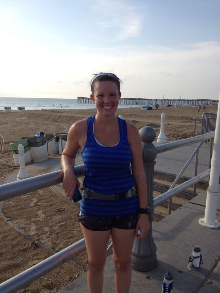 Today I ran 2+ miles…at a sub-10 pace…in 90 degree heat…while pushing my baby and leading my dog….after waking up 2 times in my 8 hour span of sleep to nurse my baby. This weekend I woke up at 5am and dragged my sleep deprived body to the oceanfront to tackle a 7 mile run before the heat warnings started. I finished that run feeling strong and with a smile on my face. (and I finished faster than my cookie-crumble 10k race a month ago!).