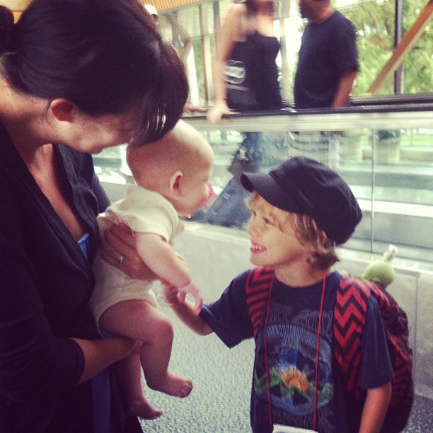 As soon as I wrapped my arms around him in the airport terminal, I was able to finally acknowledge the sadness I have been carrying around with me for the past four weeks. I missed my (first) baby boy. Although the sadness was subtle, it never went away. I just love being surround by all of my boys. Cole and I walked through security together, but he took off in a run as soon as he spotted Christian and Chet. I hope I never forget the look on Chet’s face when he saw his brother. He didn’t get overly excited like I had expected. He didn’t shriek and kicked his legs in excitement. He just stared. He took in his brother’s face for minutes. He reached out his hands to feel his cheeks, chin, lips, and eyes. He gave a tug on his hair to make sure he was real. After staring and scrutinizing every inch of his face, Chet smiled. There you are Brother. I knew I was missing someone.