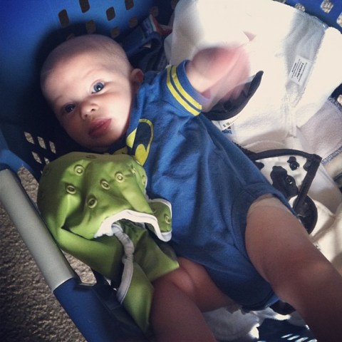 We had every intention of switching to cloth the moment Chet’s umbilical cord fell off. We purchased prefolds and diaper covers. We had a diaper sprayer. We had all the appropriate soaps, diaper rash creams, and wetbags. And then for nearly ten weeks, Chet never left my chest for at least 20 hours out of every single day. He slept on me. He nursed. He learned about the world from my arms. I could not even begin to figure out when I would wash all those diapers (Christian offered, but he was already the errand boy in our house hold, the chef, the maid, and Cole’s care provider on top of working a fulltime job. I didn’t want to add another title to his list.)