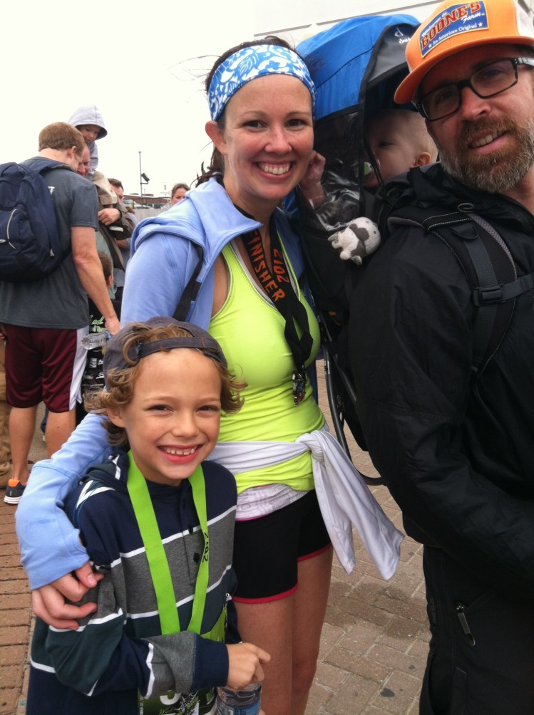 Carrie and I went to watch my mom finish the race too. I beat her this year, but she beat her time from last year by 5 minutes. Seeing her cross the finish line RUNNING was even better than crossing the finish line myself. I then ran the Monster Mile with Cole. (More on both of these in my next post.)