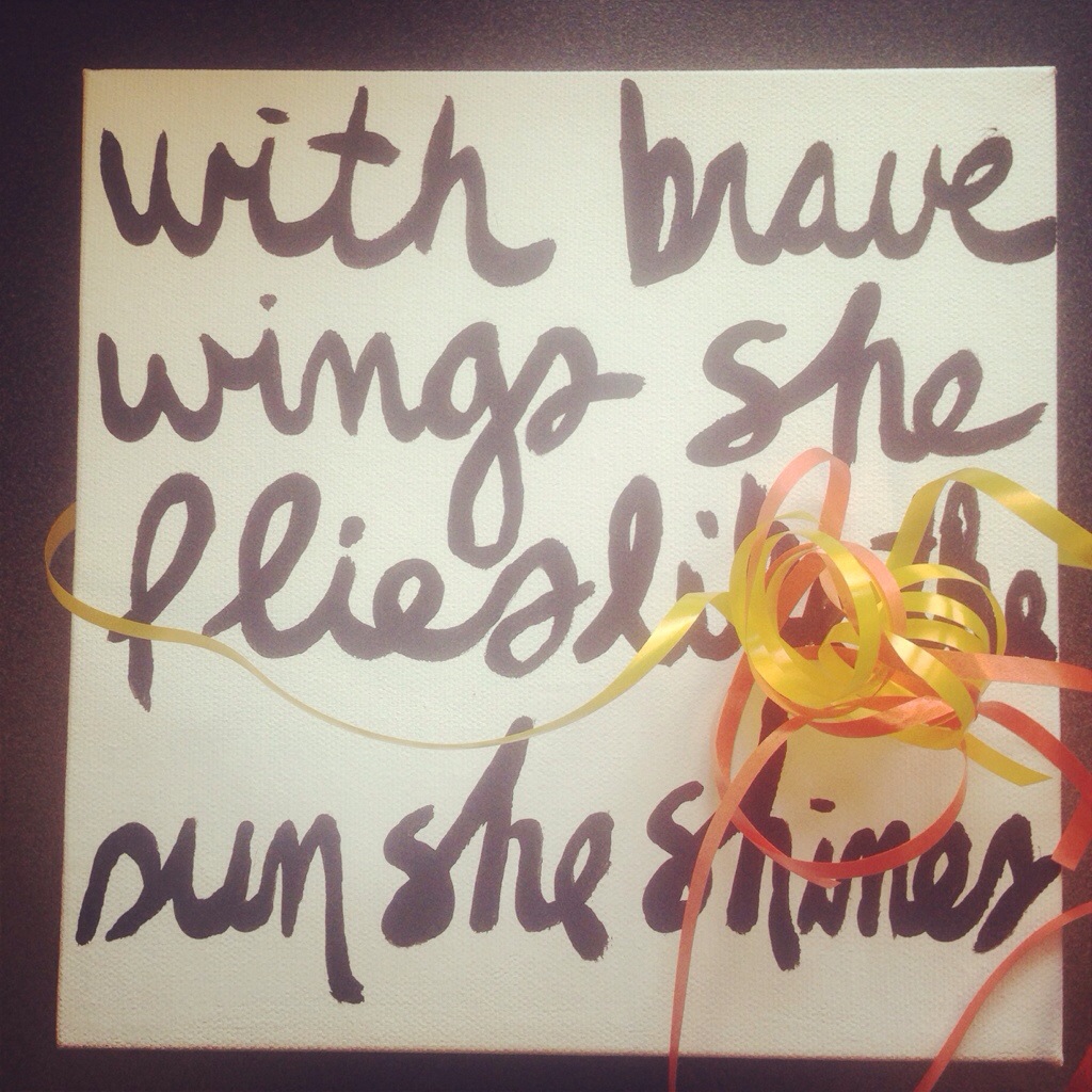I arrived at our coffee date at the exact same time as Heidi. We ordered and sat down. Before I could take a bite of my bagel, she instructed me to stop. She shoved a bag in my face. She exclaimed “happy early birthday!”. What was inside the bag made me cry. It was a hand painted canvas of the quote I hold near and dear to my heart.
