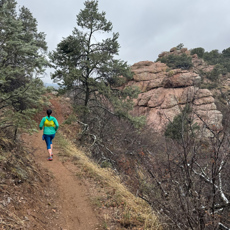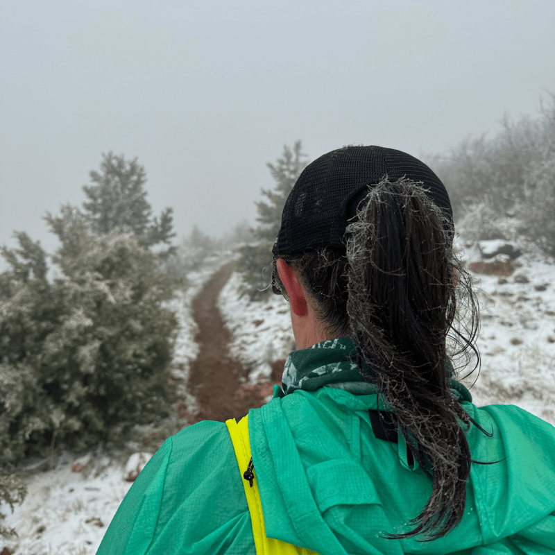 The higher we climbed, the colder it got. It felt like we were running through a cloud. The views of the gorge were nonexistent, but the snow beautifully covered the red rocks and cacti. It was a welcomed change from the muddy trails I was used to in Boulder.