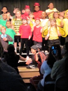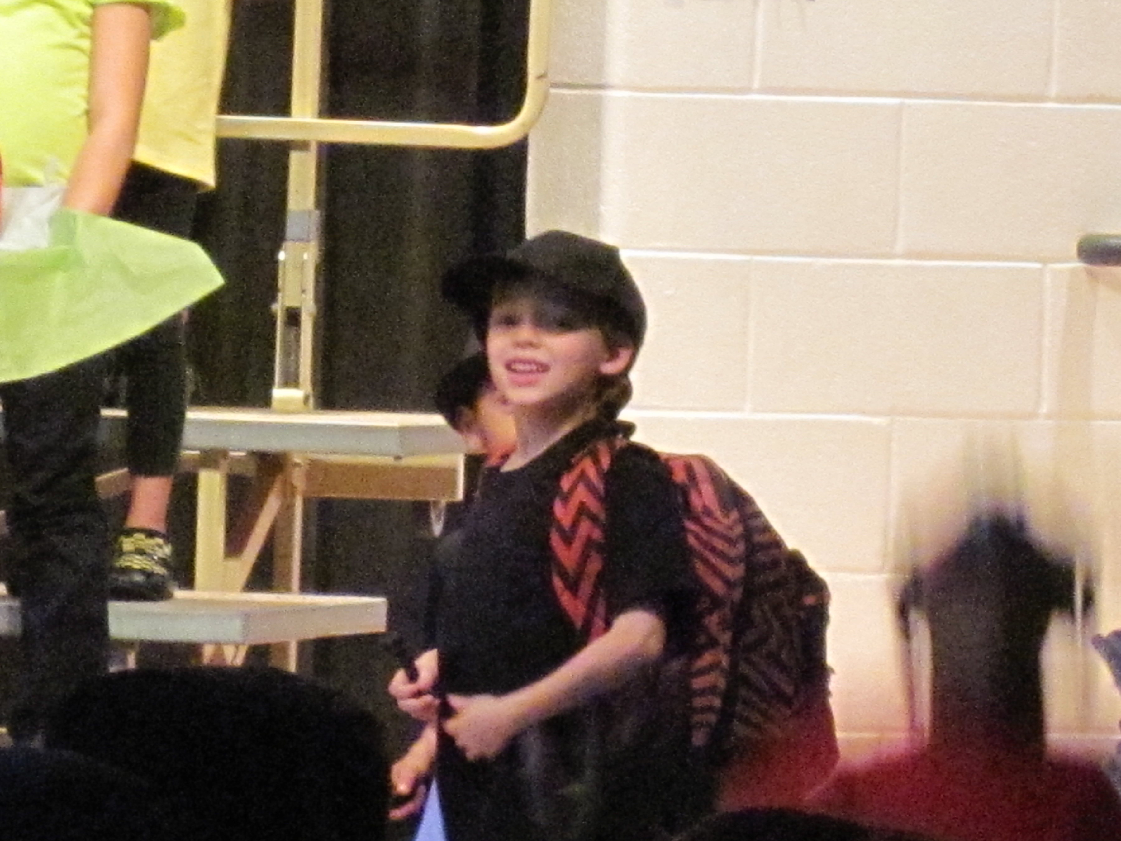Cole’s 1st grade play was last night – I have to admit, I was more nervous than I let on. In the past, Cole has shut down any time he is in the spot light or there is a crowd cheering for him. During his kindergarten performance, he dropped his chin to his chest and just stood on stage. During the shamrock final mile, he walked because he was intimidated, and he didn’t enjoy the cheering. On his birthday, we NEVER sing Happy Birthday because he truly doesn’t enjoy it. But when he is home with just us, he is a huge ham. Christian and I have already seen Cole’s rendition of the play several times, and I can sing along with all the songs. BUT given his past experience…was I nervous for his first grade play? You bet!!!!