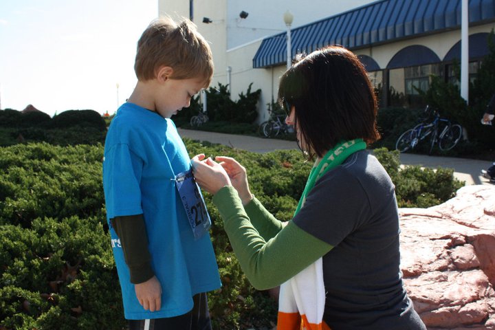 Getting Cole ready for his 1 mile run last year during Shamrock Weekend